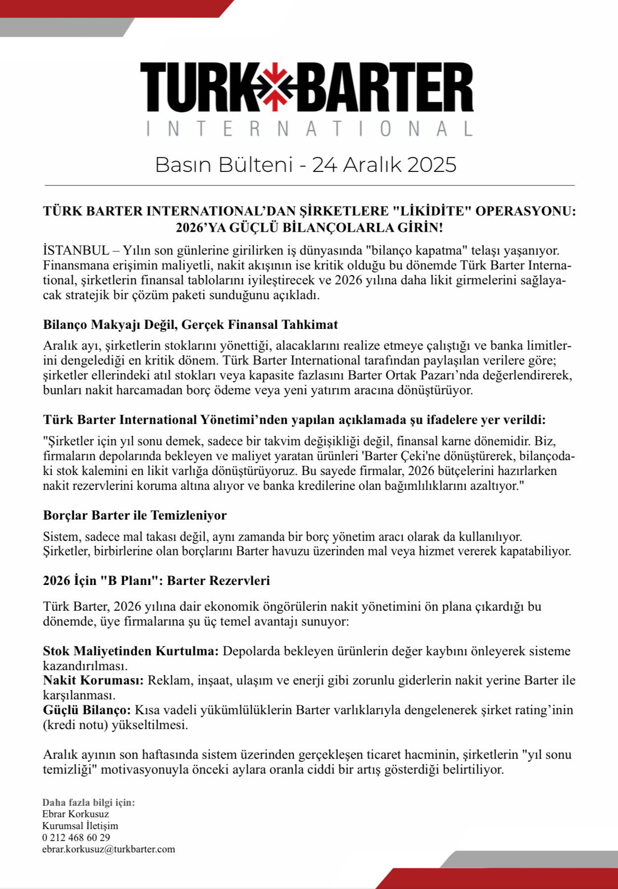 limitlerini dengelediği en kritik dönem. Türk Barter International tarafından